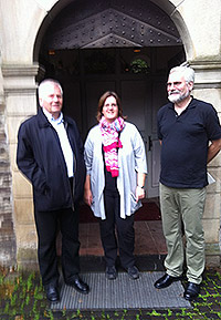 Günter Wengenroth (stv. Presbyteriumsvorsitzender), Kerstin Griese MdB und Pfarrer Gerhald Pulla vor der Waldkirche.