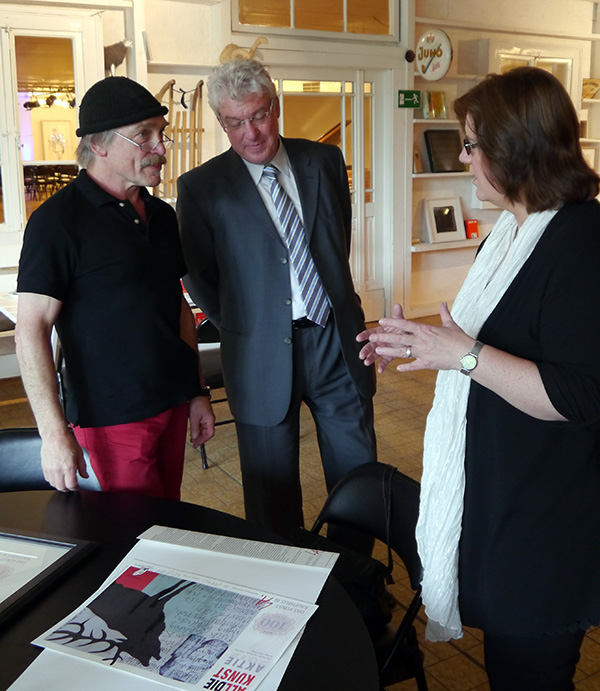 Oliver Scheytt kritisierte, dass die Union einen statischen Kulturbegriff vertrete. âDie SPD steht fĂŒr eine nach vorne gewandte Kulturâ, wies er auf die VerĂ€nderung einer digitalisierten Gesellschaft hin. Mit dem Urheberrecht und der KĂŒnstlersozialversicherung gehe es in der Bundeskulturpolitik um wichtige Querschnittsthemen, sagte der Professor fĂŒr Kulturwirtschaft. Der Besuch in Langenberg sei sein erster AuĂentermin als Mitglied des Kompetenzteams, so Scheytt. âEr hat die Basis nie vergessenâ, sagte Bauer ĂŒber den Essener Sozialdemokraten, er besuche auch die kleinen Vernissagen.