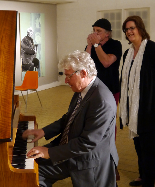 Die Sommertour-Station am Nachmittag brachte zwei alte Bekannte zusammen: den damaligen Kulturhauptstadt-Ruhr-GeschĂ€ftsfĂŒhrer Oliver Scheytt und den KĂŒnstler Norbert Bauer. Beide gemeinsam hatten das spektakulĂ€re âRuhr-Atollâ auf dem Baldeneysee verantwortet. Heute ist Scheytt âSchattenkulturministerâ im Kompetenzteam von Peer SteinbrĂŒck, wĂ€hrend Bauer das Langenberger Alldie-Kunsthaus geschaffen hat. Als erstes setzte sich der studierte Pianist Oliver Scheytt an den FlĂŒgel des Kunsthauses und spielte gemeinsam mit Norbert Bauer an der Mundharmonika eine Blues. âSo bin ich auf meinen vielen Sommertouren noch nie begrĂŒĂt wordenâ, zeigte sich die SPD-Abgeordnete Griese beeindruckt.