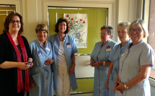 Die insgesamt 30 ehrenamtlichen Frauen der seit 1986 tĂ€tigen Blauen Engel betreuen tĂ€glich die Patienten auf den Stationen des Krankenhauses, erledigen Besorgungen fĂŒr sie und organisieren die hauseigene Bibliothek. âZuhören ist bei den Besuchen in den Zimmern das Allerwichtigsteâ, erklĂ€rt Gertrud Giesler, die Vorsitzende der Blauen Engel. Viele der Patienten haben keine Verwandten mehr oder diese wohnen zu weit entfernt, so dass sie mit keinem Besuch rechnen können. Hier bieten die Blauen Engel, die unterschiedlichste berufliche HintergrĂŒnde haben, mit sensiblem FingerspitzengefĂŒhl Hilfe und lenken die teils sehr alten und kranken Patienten mit fĂŒrsorglichen GesprĂ€chen vom Krankenhausalltag ab. âIch bin mir sicher, dass ohne die Blauen Engel das St. Marien Krankenhaus weitaus Ă€rmer wĂ€reâ, so Griese. Sie betonte auĂerdem die Wichtigkeit des Ehrenamtes und bedankte sich bei den Damen der Blauen Engel mit einer sĂŒĂen StĂ€rkung.