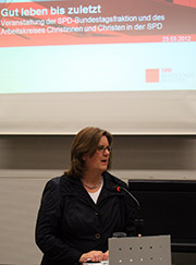 „Gut leben bis zuletzt“ hieß das Thema der Jahrestagung des Arbeitskreises „Christinnen und Christen in der SPD“, zu der Kerstin Griese als Kirchenbeautragte der SPD-Fraktion in den Reichstag eingeladen hatte. „Die Frage nach dem Miteinander der Generationen angesichts einer älter werdenden Gesellschaft beschäftigt nahezu jede und jeden“ sagte Griese zur Begrüßung der mehr als 200 Besucher im SPD-Fraktionssaal. „Es geht immer um Menschen, die im Bezug zu anderen Menschen leben, zu Jüngeren und Älteren, zu Fitten und Pflegebedürftigen, zu Verwandten, Freunden sowie haupt- und ehrenamtlichen Begleitpersonen.“ SPD-Urgestein Franz Müntefering stimmte ihr zu und wand sich entschieden dagegen, von einem „Generationenkonflikt“ zu reden. „Wir dürften die Generationenfrage nicht nutzen, um die quer dazu liegenden sozialen Verwerfungen aus dem Blick zu verlieren“, betonte der Erlanger Theologieprofessor Peter Dabrock. Der Heidelberger Altenforscher Andreas Kruse unterstrich die Verantwortung der Älteren. Sie seien durchaus gefordert, sich aktiv zu beteiligen, von der Gesundheitsprävention bis zum ehrenamtlichen Engagement.