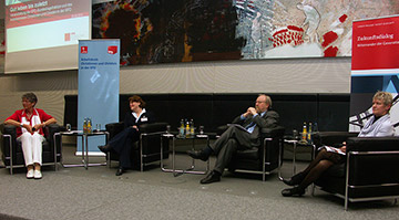 Bundestagsvizepräsident Wolfgang Thierse verteidigte das Engagement christlicher Altenpflegeorganisationen. „Niemand muss verstecken, wodurch er motiviert ist.“ Auf der Klausursitzung des SPD-Arbeitskreises, die im Anschluss an die Tagung stattfand, war das besondere kirchliche Arbeitsrecht ein wichtiges Thema. „Das muss in einer zeitgemäßen Weise reformiert werden“, sagte Kerstin Griese und verlangte Sanktionen gegen „schwarze Schafe“, die mit Outsourcing und Leiharbeit die Löhne drücken. Kerstin Griese MdB (Mitglied des EKD-Synode, Ratingen), Benno Haunhorst (Schulleiter am bischöflichen Gymnasium Hildesheim), der evangelische Pfarrer Dietmar Kehlbreier (Altena) sowie Wolfgang Thiese MdB (Mitglied im ZdK, Berlin) wurden erneut in den vierköpfigen Sprecherkreis des AK „Christen in der SPD“ gewählt.