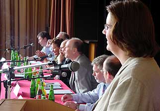 „Jugendliche sind keine Faulenzer und Drückeberger“, stellte die Jugendpolitikerin Kerstin Griese fest, bevor die von ihr eingeladenen Gäste zu Wort kamen. Mit viel Applaus war der Bundesarbeitsminister Walter Riester begrüßt worden, um über die Bekämpfung der Jugendarbeitslosigkeit zu sprechen.
