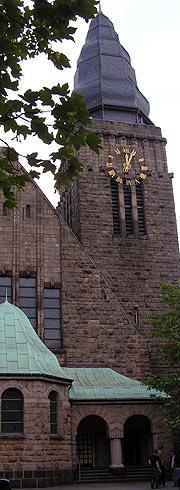 der Turm der Velberter Christuskirche, der 49 Meter hoch ist. 1910 wurde die