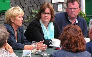Nachdem zunächst der organisatorische Aufbau der ARGE im Vordergrund stand, müsse jetzt die Integration von Jugendlichen in den Arbeitsmarkt Priorität haben. Dies läge ihr besonders am Herzen, sagte Christine Bergmann bei einem anschließenden Bürgergespräch auf dem Wülfrather Kirchplatz, zu dem die SPD-Vorsitzende und stellvertretende Bürgermeisterin Bettina Molitor eingeladen hatte. Sie empfahl die Einrichtung einer Jugendkonferenz, bei der alle Beteiligten an einen Tisch geholt werden. „Die Jugendlichen haben durch Hartz IV einen Rechtsanspruch auf ein Angebot“, so Kerstin Griese.