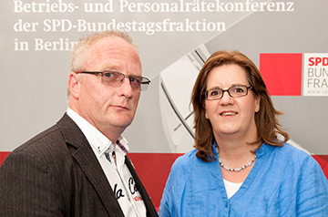 Zur Betriebsrätekonferenz der SPD-Bundestagsfraktion hatte Kerstin Griese den Betriebsratsvorsitzenden der Velberter Wieland-Werke, Dirk Mühling, eingeladen. Mühling sprach sich dafür aus, Leiharbeit und den Missbrauch der Werkverträge zu vermeiden. „Die Unterstützung der Politik ist hier besonders wichtig“, sagte er, und berichtete aus seinen betrieblichen Erfahrungen. „Was bisher ausgehandelt wurde, reicht noch nicht.“ Die Velberter Abgeordnete Kerstin Griese stimmte Mühling zu. „Die Bundesregierung ignoriert das Problem einfach und fällt durch völlige Untätigkeit auf. Hier muss dringend gehandelt werden.“