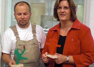 Bei der EDB-Bildungsgesellschaft in Velbert-Neviges zeigten die Teilnehmerinnen und Teilnehmer der Bundestagsabgeordneten Kerstin Griese, was sie in den Bereichen Küche, Holz, Metall, Lager und Logistik, Garten-Landschaft sowie Innenausbau Tag für Tag bewerkstelligen. Während in der Holzwerkstatt Ampelmännchen geschnitzt wurden, zeigten die Maler und Lackiererumschülerinnen und -schüler, wie sie sich die Wand in einem Wohnzimmer vorstellen können. Im Anschluss an die Führung stellte sich Griese den Fragen. Angekreidet wurde von einem Teilnehmer, dass die Stadt Velbert Arbeitsplätze durch Ein-Euro-Jobber ersetze. Kerstin Griese weiß, dass dies nicht sein darf: „Ein-Euro-Kräfte dürfen nur zusätzlich eingestellt werden. Ich werde die Situation noch einmal hinterfragen, denn das darf nicht sein.“