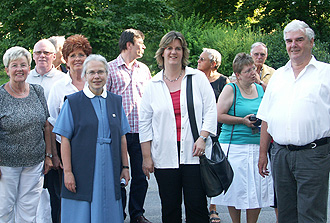 Begrüßt wurde die Besuchergruppe von Schwester Bärbel, der Oberin des Diakonissen-Mutterhauses, und dem Direktor, Pfarrer Jans Brakensiek. Sie erzählten die Geschichte des Hauses, das 1945 als Folge der deutschen Teilung in Velbert gegründet wurde. Ein Schwerpunkt sei zunächst die Krankenpflege gewesen, in der sich die Schwestern engagierten. Inzwischen habe die Bleibergquelle ein neues Profil und habe einen Schwerpunkt im Bereich Bildung gefunden. Ein Berufskolleg für Sozialpädagogik uns Sozialpflege, eine Altenpflege-Seminar und die im Aufbau begriffene Gesamtschule sind die wichtigsten Einrichtungen auf dem Bleiberggelände.
