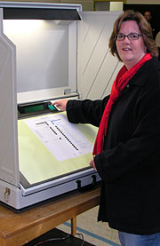 In Ratingen wird elektronisch gewählt: Kerstin Griese gibt ihre Stimme ab.