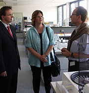 Jens Kreuter, Kerstin Griese und der ärztliche Direktor Thomas Zeiler im Labor.