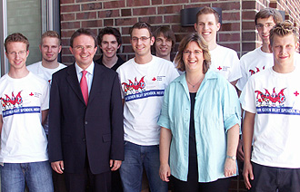 Hohen Besuch bekamen die sieben Zivildienstleistenden, die im Juli ihre Tätigkeit beim DRK-Blutspendedienst in Ratingen-Breitscheid begonnen haben, sowie einer, der bei der Westdeutschen Spenderzentrale eingesetzt ist. Der Zivildienst-Bundesbeauftragte Jens Kreuter und die Ratinger Abgeordnete Kerstin Griese , die dem für den Zivildienst zuständigen Bundestagsausschuss vorsitzt, fragten die „Zivis“ nach ihrer Motivation, ihren Wünschen und Ideen. Alle sieben jungen Männer betonten, dass sie sich auf den Kontakt mit den Menschen freuen. Denn die DRK-Zivildienstleistenden werden bei den mobilen Blutspendeterminen in der Region eingesetzt. Griese und Kreuter lobten die sehr guten Arbeitsbedingungen beim Blutspendedienst West.