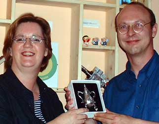 Jürgen Neumeyer, der Initiator des Wahlkreises und Geschäftsführer des Netzwerks Berlin, nahm das Ausstellungsstück freudig entgegen: Mit der ,Dröppelminna ist ein wirklich originelles und auffälliges Exponat hier in unserem ,Wahlkreis vertreten. Ich danke Kerstin Griese, dass sie uns dem gemeinsamen Ziel näher gebracht hat, dem Publikum in Berlin die Vielfalt und Buntheit der deutschen Wahlkreise zu zeigen.