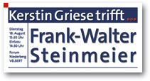 Trotz der Verteilpanne füllten immerhin 400 Gäste die Stuhlreihen im großen Saal des Forums Niederberg. „Es war eine gelungene Veranstaltung“, ist die SPD-Politikerin mit dem „Kerstin Griese trifft …“-Gepräch zufrieden. „Alle waren begeistert von Frank-Walter Steinmeier“, so Griese.