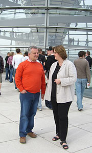 Holger Richter und Kerstin Griese vor der Reichstagskuppel.