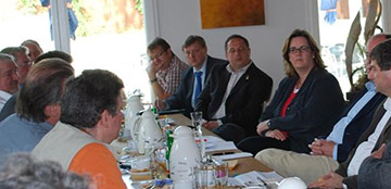 „Den Leuten, die im Niedriglohnsektor arbeiten und zum Überleben trotzdem noch zum Amt laufen müssen, um Sozialhilfe zu beantragen, denen wird die Würde genommen“, so charakterisierte ein Betriebsrat die Situation, die zurzeit auf dem Arbeitsmarkt herrscht. Prekäre Arbeitsverhältnisse und Mindestlohn standen im Vordergrund des diesjährigen Treffens der SPD im Kreis Mettmann mit Gewerkschafterinnen und Gewerkschaftern sowie Betriebs- und Personalräten. Die SPD-Bundestagsabgeordneten Kerstin Griese und Peer Steinbrück sowie der Solinger Landtagsabgeordnete Josef Neumann sprachen im Restaurant des Hildener Bahnhofs mit den Arbeitnehmervertretern aus dem gesamten Kreis Mettmann. „Wir müssen den Mindestlohn gesetzlich durchsetzen, damit die Menschen von ihrer Arbeit leben können und Unternehmen nicht auf Kosten von Arbeitnehmern Wettbewerbsvorteile erlangen“, griff die SPD-Kreisvorsitzende Griese das Motto des 1. Mai auf. „Das ist das Mindeste“ lautet der Aufruf des DGB.