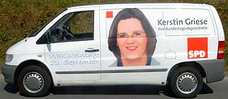 Der Bus wird vor Betriebstoren und Schulhöfen, auf Marktplätzen und bei Veranstaltungen ein Blickfang sein. Interviews mit örtlichen SPD-PolitikerInnen und mit der Abgeordneten Kerstin Griese selbst werden dafür sorgen, dass interessierte BürgerInnen stehen bleiben und sich zur bevorstehenden Wahl informieren können.