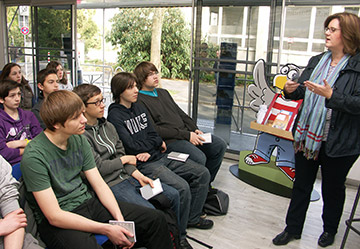 Nach den Gymnasialklassen kamen sieben weiter Kurse und Klassen zu der Abgeordneten, viele davon vom Cüppers-Berufskolleg, neben dem das Infomobil seinen Standort gefunden hatte.