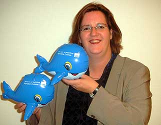 Kessie wirbt für die Bundestagsabgeordnete Kerstin Griese (35). Sie und ihre zahlreichen Helfer werde das blaue Schwimmtier in den nächsten Wochen vor Schwimmbädern und auf Wasserspielplätzen verteilen.