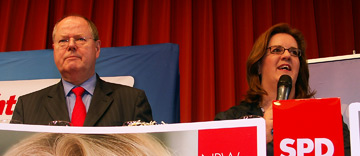 Hannelore Kraft wies darauf hin, dass der Staat mehr Einnahmen benötige. „Die starken Schultern in diesem Land können und müssen mehr tragen. Wir wollen den Spitzensteuersatz anheben auf 49 Prozent – für alle die als Einzelpersonen mehr als 100.000 Euro verdienen“, unterstrich Kraft.