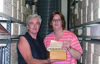 Die Ratinger Abgeordnete und gelernte Historikerin Kerstin Griese war zu Besuch im Stadtarchiv. Die Leiterin und promovierte Historikerin Erika Münster, die wie Kerstin Griese in Düsseldorf studiert hat, zeigte ihr die Sammlung und erläuterte die Aufgaben des Archivs.