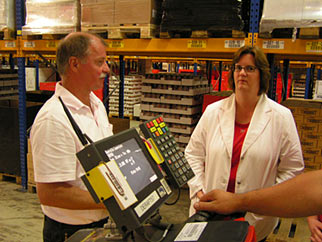 Kerstin Griese zeigte sich sehr beeindruckt von der hochmodernen Logistiktechnologie, die in Homberg verwendet wird. Zirka 50 Festangestellte und 40 Aushilfen sind in dem Ratinger Distributionszentrum beschäftigt. Die Abgeordnete freute sich, dass es in ihrer Heimatstadt Unternehmer mit sozialer Verantwortung und gesellschaftlichem Engagement gibt.