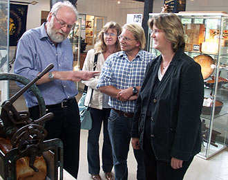 Anschließend fuhr Kerstin Griese in die Heiligenhauser Abtsküche. Der Leiter des Kulturamts Heiligenhaus, Reinhard Schneider, führte die Abgeordnete durch die Sonderausstellung „Vom Korn zum Brot“ und die Dauerausstellung, die Alltagsgeschichte aus Heiligenhaus zeigt. Griese war beeindruckt von dem großen Engagement Schneiders, der mit den fast ausschließlich selbst erstellten Ausstellungen und weitergehenden Aktivitäten wie Museumsnacht, Bücherflohmarkt und Konzerten viele interessierte Menschen anlockt. „Es ist der Verdienst von Reinhard Schneider, dass das Heimatmuseum Abtsküche nicht nur für Menschen aus Heiligenhaus ein fester Begriff ist.“