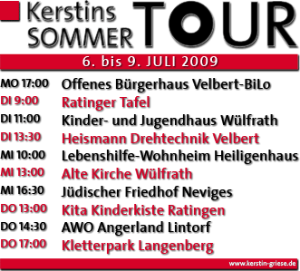Im Offenen Bürgerhaus Birth-Losenburg beginnt die Tournee von SPD-Generalssekretär Hubertus Heil und der Diplom-Pädagogin Katharina Saalfrank. Die Velberter Bundestagsabgeordnete Kerstin Griese hatte die beiden im Rahmen ihrer SommerTOUR eingeladen. Saalfrank ist seit einiger Zeit Mitglied des SPD-Forums „Kinder und Familie“, deren Vorsitz Griese inne hat. Sie ist seit zwölf Jahren SPD-Mitglied und hat sich bereit erklärt, ehrenamtlich und unentgeltlich ihre Partei zu unterstützen. Sie ist zwar keine Politikerin, aber ein „politischer Mensch“.