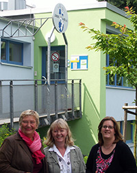 Brigitte Djuric, Beate Richter und Kerstin Griese vor dem sanierten Gebäude.