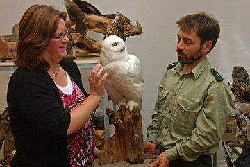 Stolz zeigte Johannsen der Abgeordneten seine jüngste Neuerwerbung: „Eine einzigartige naturkundliche Sammlung. Hier sind alle Spechte zu sehen, die es in Deutschland gibt. Nicht einer fehlt“, deutete er auf die ausgestopften Vögel. Auch Eulen, Raben und Greifvögel seien vollständig vorhanden, freute sich der Zentrumsleiter darüber, die Ausstellungsstücke mit Hilfe von Sponsoren erworben zu haben. Die Sammlung sei von einem vormaligen Kurator des Bonner Museums König angelegt worden.