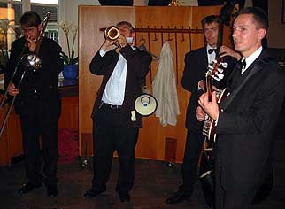 Zum Abschluss überreichte Kerstin Griese der Ministerin, die eine promovierte Pharmazeutin ist, drei mal den aufblasbaren Wal Kessie für die drei Enkelkinder von Christine Bergmann. Der Ministerin und Kerstin Griese hat die sehr lebhafte Diskussion, zu deren Eröffnung The Double Fourside Dixieband gespielt hatte, viel Spaß gemacht.
