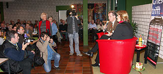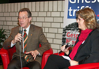 Nahezu 350 gespannte Bürgerinnen und Bürger drängelten sich ins evangelische Gemeindezentrum in Lintorf. So viel Andrang hat es in den vorangegangenen 48 „Kerstin Griese trifft …“-Veranstaltungen noch nie gegeben. Doch diesmal hatte sich der überaus beliebte SPD-Chef Franz Müntefering angekündigt. Doch er verspätete sich, denn er war zunächst noch in der Langenberger Grundschule am Kuhweg, um dort zum bundesweiten Vorlesetag den Kindern eine Geschichte vorzulesen.