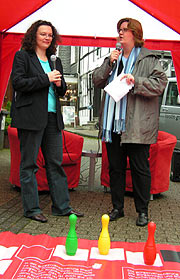 „Die Mehrheit der Deutschen will die Bürgerversicherung“, sagte Andrea Nahles, die Gast bei „Kerstin Griese trifft …“ auf dem Nevigeser Markt war. „Nur eine Minderheit unterstützt die Kopfpauschale von Angela Merkel.“ Die ehemalige Juso-Vorsitzende hat sich als Chefin der „Arbeitsgruppe Bürgerversicherung“ einen Namen als Sozialexpertin gemacht. „Die Kopfpauschale ist unsozial.“