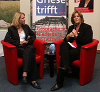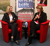 Dass sie etwas von ihrer künftigen Aufgabe versteht, machte Manuela Schwesig im Gespräch mit Kerstin Griese deutlich. Die 35-Jährige – sie ist Deutschlands jüngste Ministerin – bringt fast jeden morgen ihren zweijährigen Sohn mit dem Fahrrad zur Kita. „Dann habe ich auch keinen Ärger mit dem Dienstwagen.“ Und sie hat gemeinsam mit ihrem Mann eigene positive Erfahrungen mit dem Elterngeld und den Partnermonaten gemacht. Schwesig rief die Unternehmen dazu auf, Väter zu unterstützen, wenn sie ihre Elternzeit in Anspruch nehmen wollen.