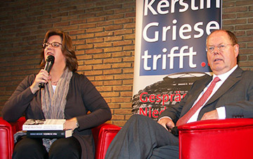 Griese erinnerte daran, dass Steinbrück schon vor langer Zeit einen Schuldenschnitt für Griechenland gefordert hatte, der jetzt beschlossen wurde. Dafür sei es noch nicht zu spät, meinte Steinbrück, aber es hätte auch viel früher kommen dürfen. „Man darf den Griechen nicht ihren Stolz nehmen“, appellierte Steinbrück auch an die Medien, nicht auf dem Boulevard Ressentiments zu schüren. Und er forderte ein Wirtschaftshilfeprogramm für Griechenland. Das bisher beschlossene „Diätprogramm“, bringe sie nicht auf die Beine, „sondern aufs Lager“.