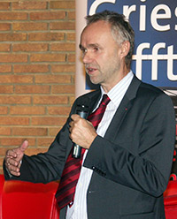 Manfred Krick, stellvertretender Landrat, begrüßt Griese, Steinbrück und das Publikum.