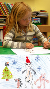 „Alle haben tolle Bilder von Dachs, Maulwurf, Igel und Hase gemalt“, freut sich Griese darüber, dass ihr vorgelesenes Buch den Kindern so gut gefallen hat. Die evangelische Kita habe ihr sehr dabei geholfen, eine einmalige Weihnachtskarte zu gestalten, bedankt sie sich bei der Leiterin Brigitte Gierschewski und den beteiligten Fünf- und Sechsjährigen.