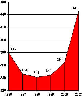 waren 10%. 1998 studierten allerdings 45.000 Studenten im Ausland, das sind knapp