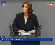 Wolfgang Thierse sprach Kerstin Griese für ihre erste Plenumsrede von seinem Präsidiumsplatz seine herzliche Gratulation aus. Am Ende gab es Glückwünsche von Fraktionschef Peter Struck und zahlreichen Kollegen, berichtete die Rheinische Post.