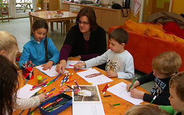Kerstin Grieses Weihnachtskarte 2012 ist in Kooperation mit der AWO-Kita im Lintorfer Familienzentrum enstanden. Zunächst hatte die Bundestagsabgeordnete einer Gruppe von Fünf- und Sechsjährigen die Wintergeschichte „Tomte Tummetott“ von Astrid Lindgren vorgelesen. Anschließend wurde gemeinsam gemalt. Das Bild von Loreley Frohnhoff (5) wählte Griese gemeinsam mit der Zentrumsleiterin Laura Tiemann aus, um es auf die Weihnachtskarte zu drucken. „Das Vorlesen und Malen hat mir viel Freude gemacht“, bedankte sich Kerstin Griese bei den Kindern und den Erzieherinnen.